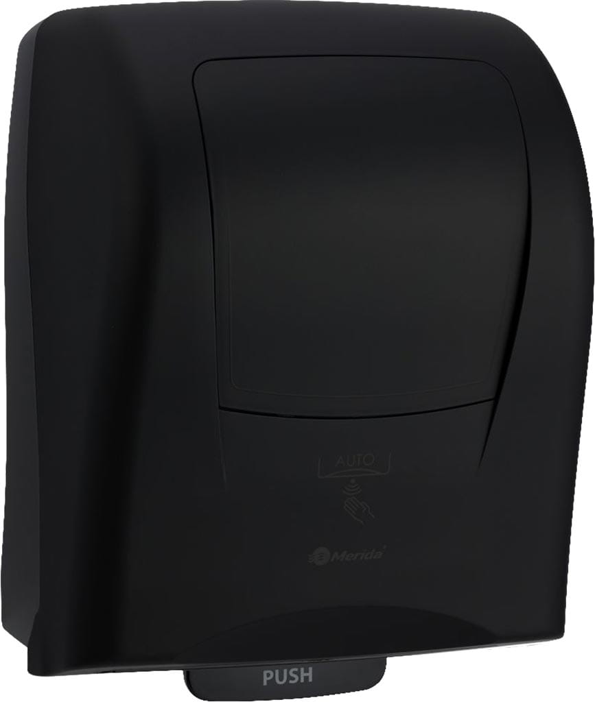 wykonany z tworzywa ABS z jedwabiście matową powierzchnią - automatyczne, bezdotykowe podawanie ręcznika - praca urządzenia programowana za pomocą 4 przełączników na panelu sterującym - zasilany 4 bateriami alkaicznymi R20 lub zasilaczem sieciowym - zasilacz chowany wewnątrz urządzenia w miejscu kasety na baterie (kupowany osobno) - łatwe zakładanie nowej rolki papieru z wykorzystaniem wewnętrznego przycisku AUTO FEED do automatycznego nawinięcia papieru na rolki - diodowy wskaźnik stanu urządzenia, umiejscowiony w dolnej części podajnika, migając na niebiesko sygnalizuje gotowość do pracy, migając na czerwono co 5 sekund sygnalizuje słabe baterie, świecąc stale na czerwono sygnalizuje wyczerpane baterie, migając pulsacyjnie na czerwono sygnalizuje zakleszczenie papieru w urządzeniu - wykonany z wysokiej jakości tworzywa ABS - transparentne okienko do kontroli ilości ręcznika - zamykany na klucz - wymiary 39 cm/27,5 cm/22,5 cm