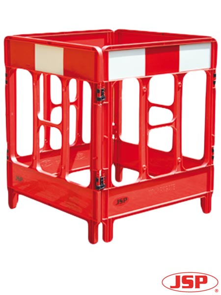 wymiary: wys. - 1 m, dł. (jednego przęsła) - 84 cm - złożona z czterech części połączonych zaciskami na zawiasach - w kolorze czerwonym lub żółtym z odblaskowym panelem w górnej części zgodnym z normą BS873 - nie zawiera metalowych elementów - w dolnej części duża powierzchnia na umieszczenie logo czy informacji o firmie - łatwo się składa, szybko się rozkłada, lekka, praktyczna w przechowywaniu i przenoszeniu - bardzo często stosowana na budowach