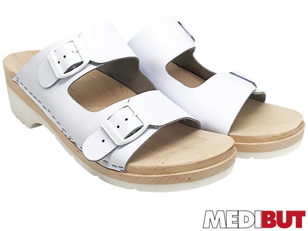 wykonane z najwyższą starannością z najwyższej jakości skór naturalnych - skórzana cholewka z możliwością regulacji tęgości – 2 paski zapinane klamerkami - drewniana podeszwa o pełnym profilu ortopedycznym, która pozwala na wygodne ułożenie stopy, ale także wchłania i magazynuje pot - podeszwa zakończona bieżnikiem antypoślizgowym wykonanym z PU, który zapobiega przed poślizgiem w trakcie chodzenia