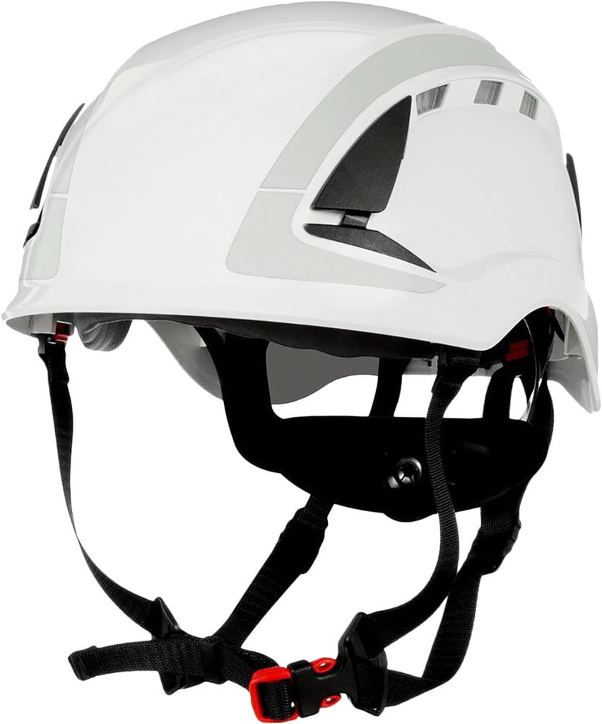 - unikalny 4-punktowy pasek podbródkowy z przełącznikiem między normami EN, pozwala przełączać się tak, aby hełm spełniał wymagania norm EN 12492 lub EN 397