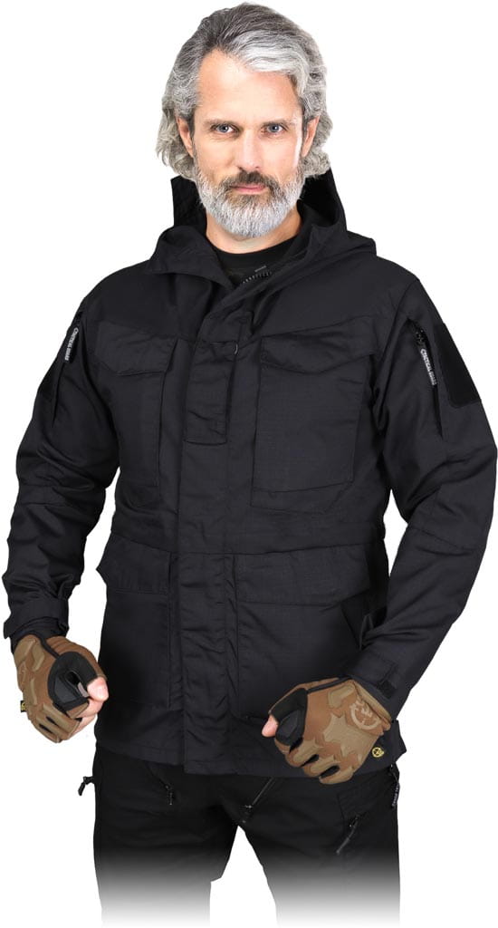 tkanina rip-stop: 65% poliester, 35% bawełna - gramatura 210-220 g/m2 - tkanina typu rip-stop - zabezpiecza przed rozdarciem w momencie zaczepienia o wystający przedmiot - zapinana na dwustronny suwak z dodatkowym zapięciem na rzepy - kaptur z daszkiem z możliwością zwinięcia i zapięcia na guzik - dwie podwójne kieszenie w dolnej części oraz dwie podójne na klatce piersiowej - kieszenie na obu rękawach zapinane zapinane na suwak - od wewnątrz gumka do ściągnięcia kurtki w pasie, dzięki czemu można ją dopasować do sylwetki i zabezpieczyć przed dostaniem się wiatru - otwór na słuchawki wewnątrz kurtki - dół kurtki oraz rękawy zakończone zapięciem na rzep - po bokach kurtki dodatkowe suwaki dające możliwość wentylacji, które w pozycji otwartej utrzymywane są przez magnetyczne zamknięcia - dedykowana dla miłośników militariów, podróżników, fanów paintballu - idealna dla leśników i rybaków