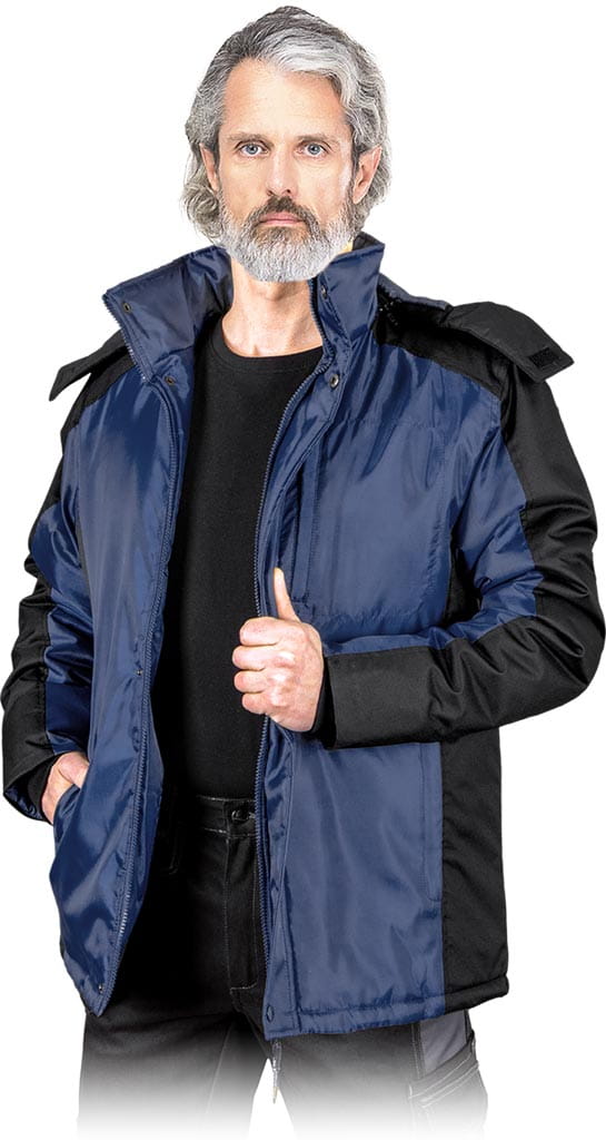 powłoka 100% poliester o gramaturze 120 g/m2 - wyściółka 100% poliester o gramaturze 280 g/m2 - podszewka 100% poliester o gramaturze 60 g/m2 - wstawki z czarnego materiału 100% poliester o gramaturze 180 g/m2 - zapinana na suwak z dodatkowym zapięciem na napy - kołnierz w formie stójki - odpisuwanyy kaptur z dodatkowym zapięciem na rzep dla lepszej ochrony głowy przed chłodem - dwie kieszenie po zewnętrznej oraz jedna na klatce piersiowej zapinane na suwak - po wewnętrznej stronie dodatkowa kieszeń zapinana na rzep - rękawy zakończone ściągaczem - zgodna z normą EN ISO 13688