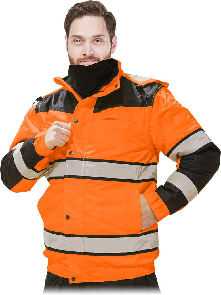 - tkanina we fluorescencyjnym kolorze i pasy odblaskowe zwiększają widoczność