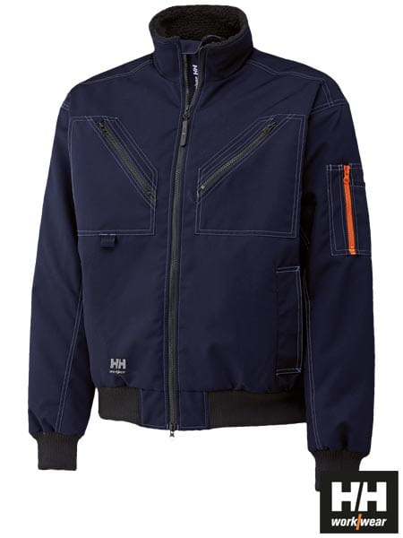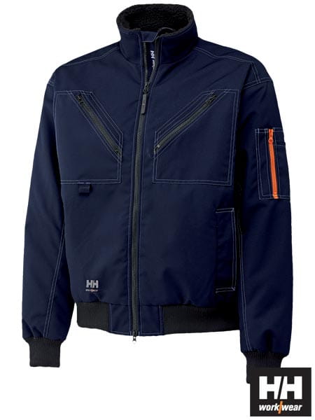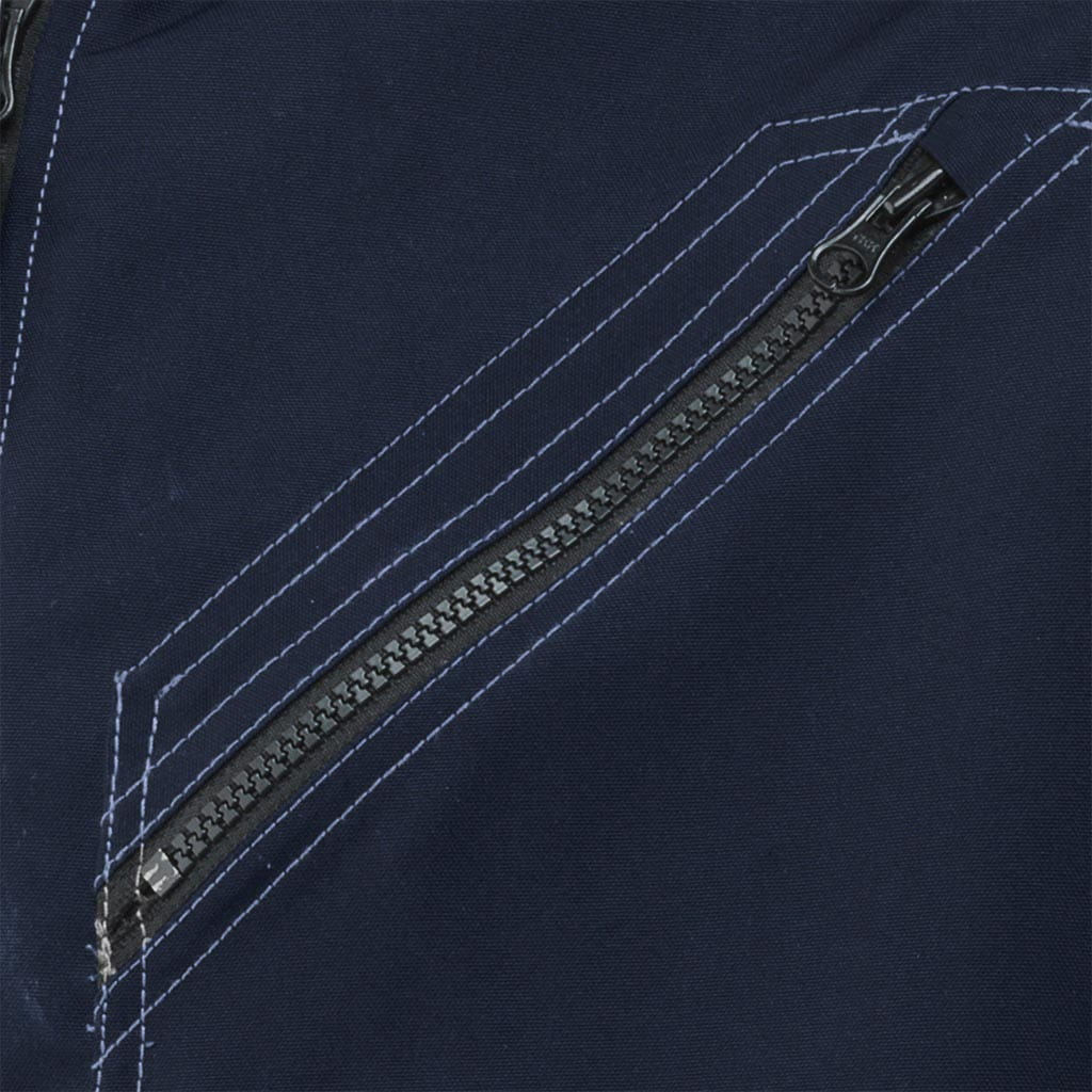 - pięć kieszeni, a tym dwie dolne zamykane na zatrzaski, dwie na klatce piersiowej na zamek błyskawiczny oraz jedna na rękawie z dodatkową kieszonką na długopis