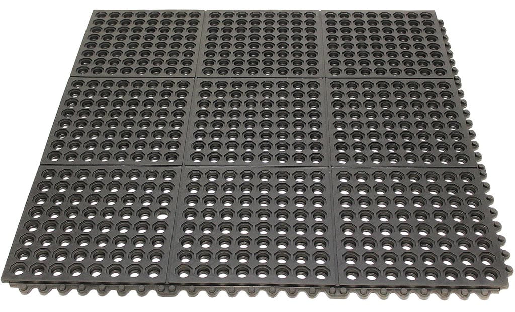 - otwory przelotowe gromadzą luźne zanieczyszczenia oraz ułatwiają odprowadzanie rozlanych cieczy pod matę,