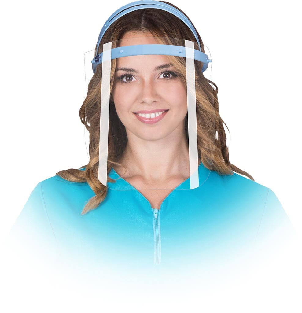 Osłona twarzy składająca się z szybki, opaski naczołowej oraz gumki ściągającej