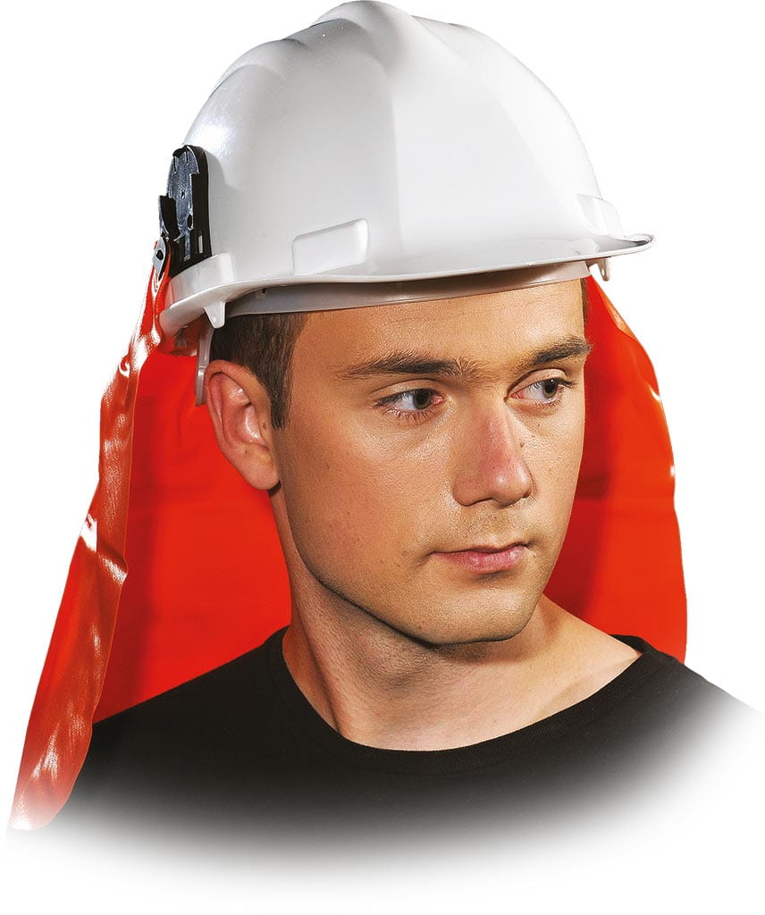 - zakrywa kark, chroniąc przed słońcem, opiłkami, kurzem czy odpryskami spadającymi z góry