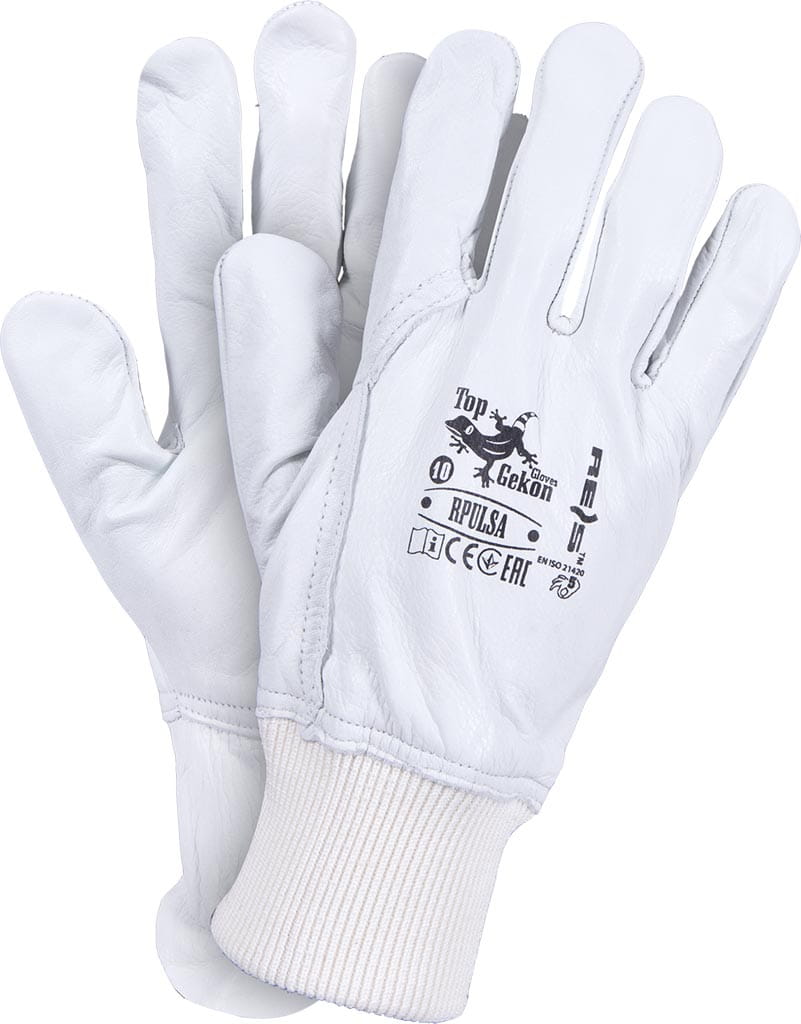 Rękawice budowlane ze skóry bydlęcej licowej w jasnym kolorze