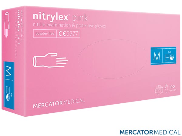 bezpudrowe, nitrylex® pink. - pasują na prawą i lewą rękę - idealnie nadają się do skomplikowanych manipulacji - powierzchnia zewnętrzna mikroteksturowana z teksturą na końcach palców - od wewnątrz polimeryzowane i chlorowane - mają zastosowanie w z salonach kosmetycznych, fryzjerskich, pracach domowych w przetwórstwie mięsa, warzyw i owoców oraz w środowisku medycznym, stomatologicznym - dopuszczone do kontaktu z żywnością - stanowią wyrób medyczny klasy I jak i środek ochrony indywidualnej kategorii III - pakowane po 100 szt. w opakowaniu - zgodne z normami EN455, EN374-2,4, EN ISO374-5, EN ISO 374-1, EN16523-1, EN ISO 15223-1 oraz EN420