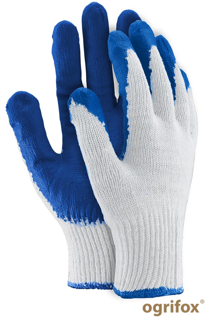 dzianina: 65% bawełna, 35% poliester (ścieg 10) - powlekane lateksem - zakończone ściągaczem - idealnie nadają się do wszelkiego rodzaju prac mechanicznych oraz w gospodarstwach domowych