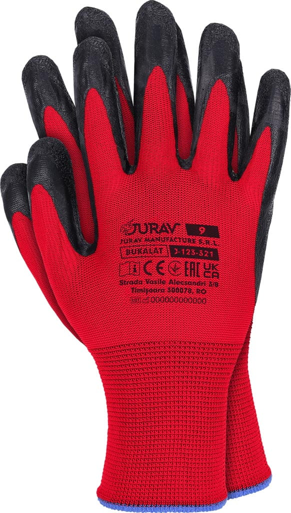 100% poliester (ścieg 13) - powlekane lateksem - zakończone ściągaczem - powleczenie o chropowatej strukturze zapewnia doskonałą chwytność, nie powodując usztywnienia rękawicy - rozciągliwe i wytrzymałe, mimo iż są cienkie - elastyczne, dzięki czemu świetnie dopasowują się do dłoni - nie kurczą się w kontakcie z wodą oraz zapewniają doskonałą manualność przy ograniczeniu ślizgania się trzymanego przedmiotu