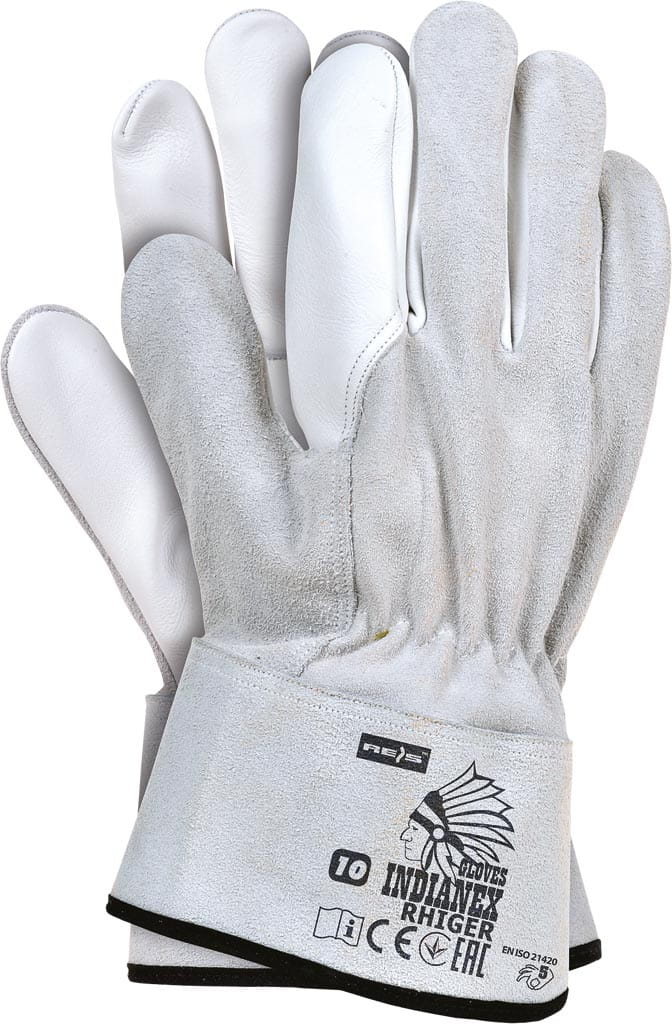 Rękawice skórzane z dwoiny bydlęcej połączonej ze skórą kozią licową
