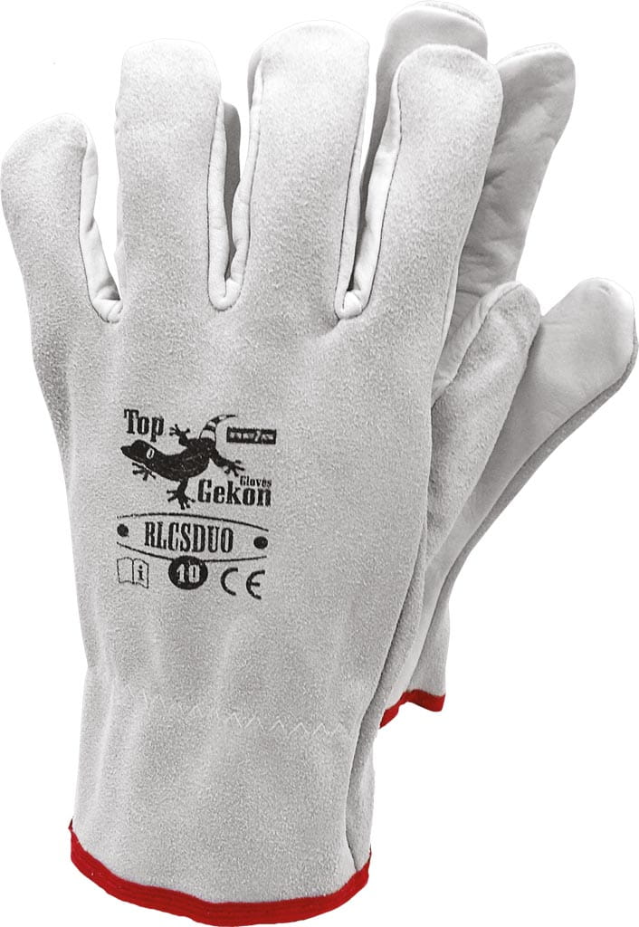 Rękawice ze skóry bydlęcej licowej na części chwytnej połączona ze skórą bydlęcą dwoinową na części wierzchniej