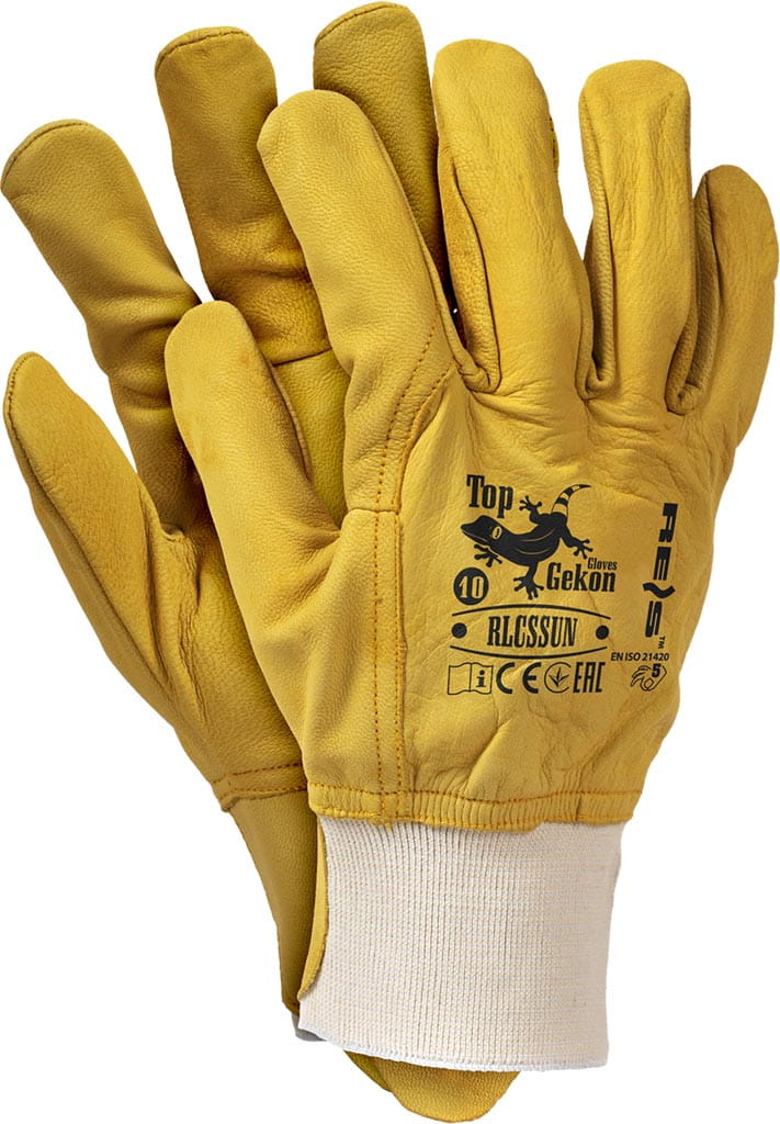 Skórzane rękawice budowlane ze ściągaczem RLCSSUN