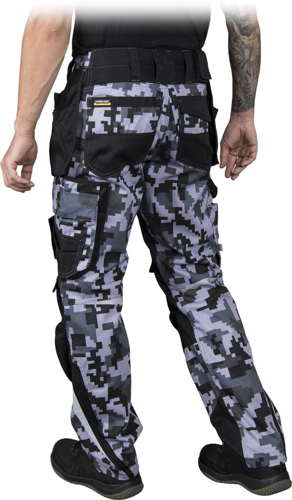 tkanina: 65% poliester, 35% bawełna - gramatura 300 g/m2 - zapinane na guzik i zamek błyskawiczny - cztery kieszenie po bokach, w tym dwie doszywane - doskonałe do przechowywania narzędzi - dwie kieszenie z tyłu, w tym jedna zapinana na rzep - kieszenie na nogawkach, w tym na telefon komórkowy - końcówka do przypięcia kluczy - na kolanach kieszenie na wkładki nakolannikowe zapinane na rzep - odblaskowe elementy - „S” shape - profilowane nogawki zapewniają lepsze dopasowanie się do sylwetki użytkownika - testowane na zawartość szkodliwych dla zdrowia substancji zgodnie ze standardami OEKO-TEX® Standard 100