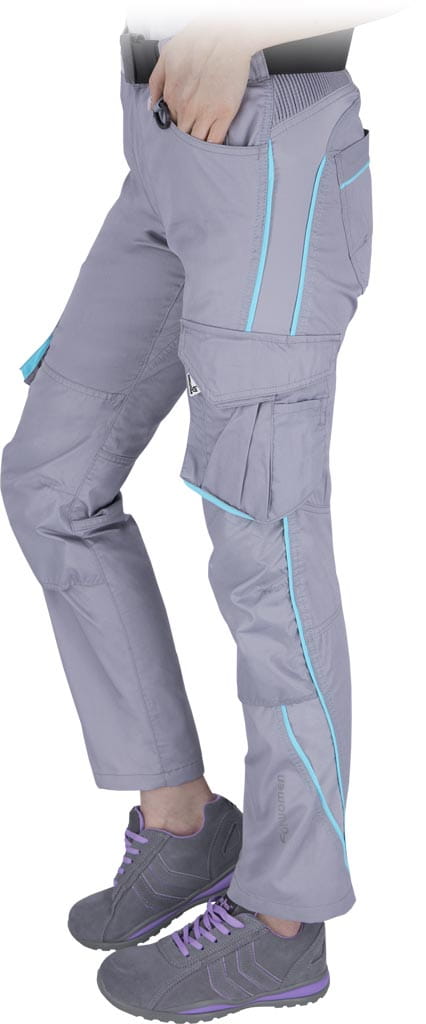 60% bawełna, 40% poliester - gramatura 155 g/m2 - dodatkowe wstawki po bokach z elastycznego poliestru o gramaturze 150 g/m2 - zapinane na guzik i zamek błyskawiczny - gumki w pasie w bocznych partiach zwiększają swobodę ruchów oraz umożliwiają lepsze dopasowanie - dwie kieszenie z tyłu oraz dwie kieszenie z przodu - cztery kieszenie na nogawkach w tym jedna zapinana na suwak oraz dwie zapinane na rzep, dodatkowe kieszonki na akcesoria i na telefon - końcówka do przypięcia kluczy - na kolanach kieszenie na wkładki nakolannikowe KING BEE - staranne wykonanie oraz zwiększona wytrzymałość zapewniają wysoki komfort użytkowania - testowane na zawartość szkodliwych dla zdrowia substancji zgodnie ze standardami OEKO-TEX® Standard 100