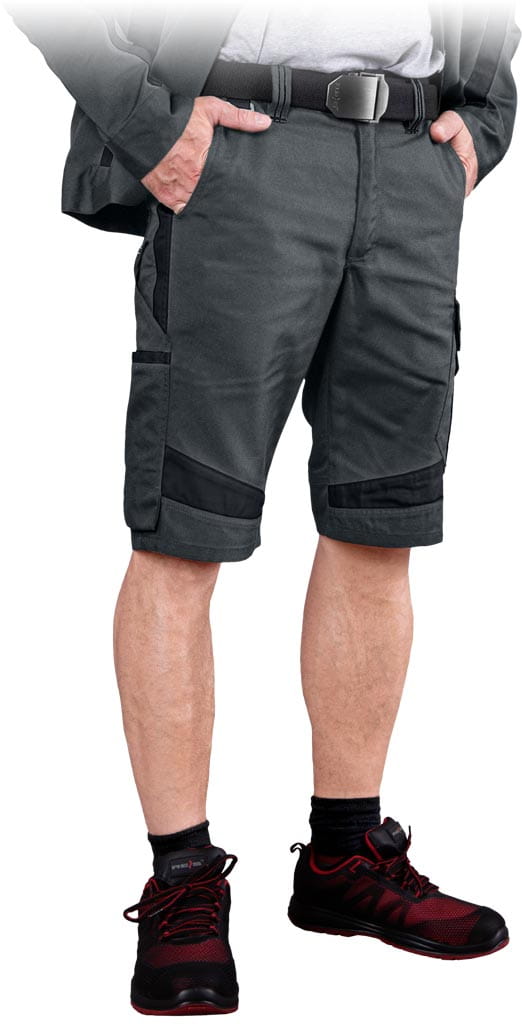 tkanina: 65% poliester, 35% bawełna o gramaturze 270 g/m2 - wstawki z kontrastowego materiału 65% poliester, 35% bawełna o gramaturze 195 g/m2 - trzy boczne kieszenie, w tym jedna zapinana na suwak - dwie tylne kieszenie zapinane na rzep - kieszenie na nogawkach, w tym na telefon komórkowy - gumy wszyte w pasie dla regulacji tęgości, dzięki czemu spodnie lepiej dopasowują się do sylwetki - końcówka do przypięcia kluczy - pętelki umożliwiające doczepienie dodatkowych akcesoriów - modne połączenie kolorów nadaje atrakcyjny wygląd