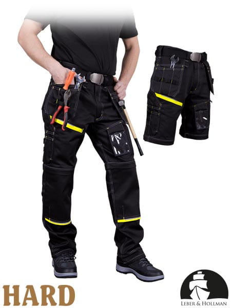 65% poliester, 35% bawełna - gramatura 300 g/m2 - technologia High Technology Fabric zapewnia wytrzymałość i odporność na wytarcia, zwiększa również odporność na smary, oleje i brud - możliwość odsunięcia dolnej części nogawek, dzięki czemu otrzymamy krótkie spodenki - dwie boczne kieszenie oraz dwie tylne, dodatkowo doszywane dwie kieszenie idealne na narzędzia - kieszenie na nogawkach, w tym na telefon komórkowy oraz na identyfikator - końcówka do przypięcia kluczy - na kolanach kieszenie na wkładki nakolannikowe KING BEE - idealne na zmienną pogodę - bez konieczności przebierania się