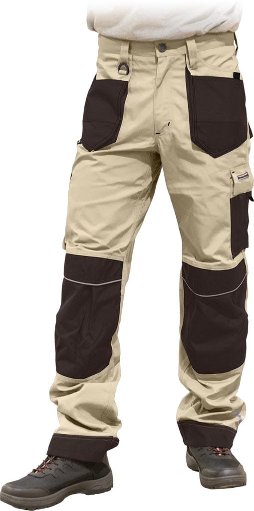 - na kieszeniach, kolanach oraz na dole nogawek dodatkowe wzmocnienie co zwiększa wytrzymałość spodni na przetarcia