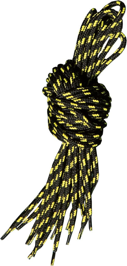 - sznurowadła o długości 100 cm i 120 cm występują w kolorach czarnym, czarno-brązowym, czarno-czerwonym oraz czarno-żółtym, 150 cm w kolorach czarnym i czarno-brązowym