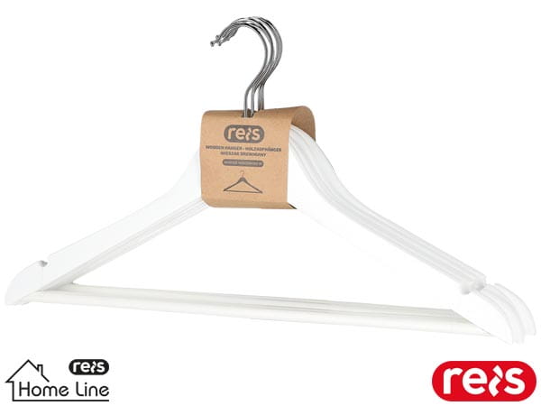 drewniany z poprzeczką - chromowany uchwyt z żelaza - nacięcia na ramionach - szerokość poprzeczki: 44,5 cm - do uniwersalnego użytku - gwarantuje bezpieczeństwo dla tkanin - zapewnia wentylację odzieży w garderobie - najmniejsza jednostka sprzedaży - 5 sztuk