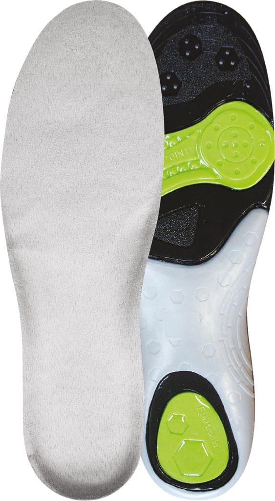 - spodnia warstwa jest połączeniem trzech żeli o różnej gęstości, które odciążają anatomiczne punkty podparcia stopy (pięta oraz I i V głowa kości śródstopia)