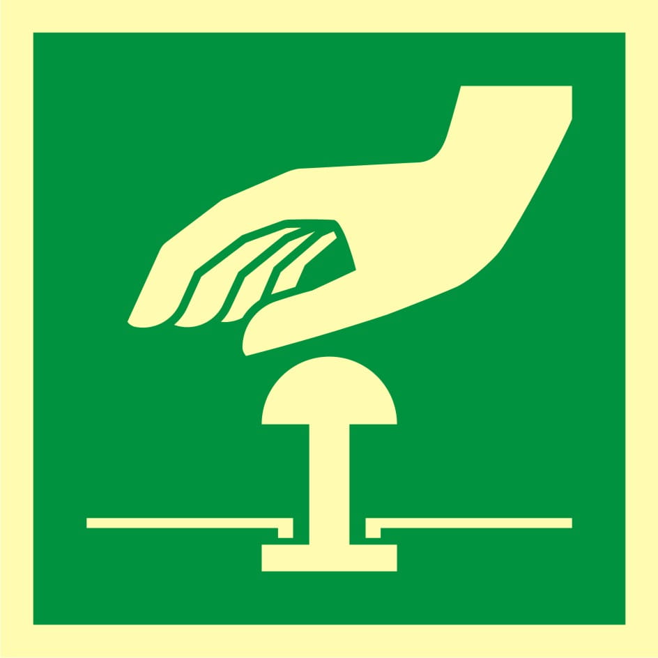 Przycisk awaryjnego zatrzymania - Znak ewakuacyjny