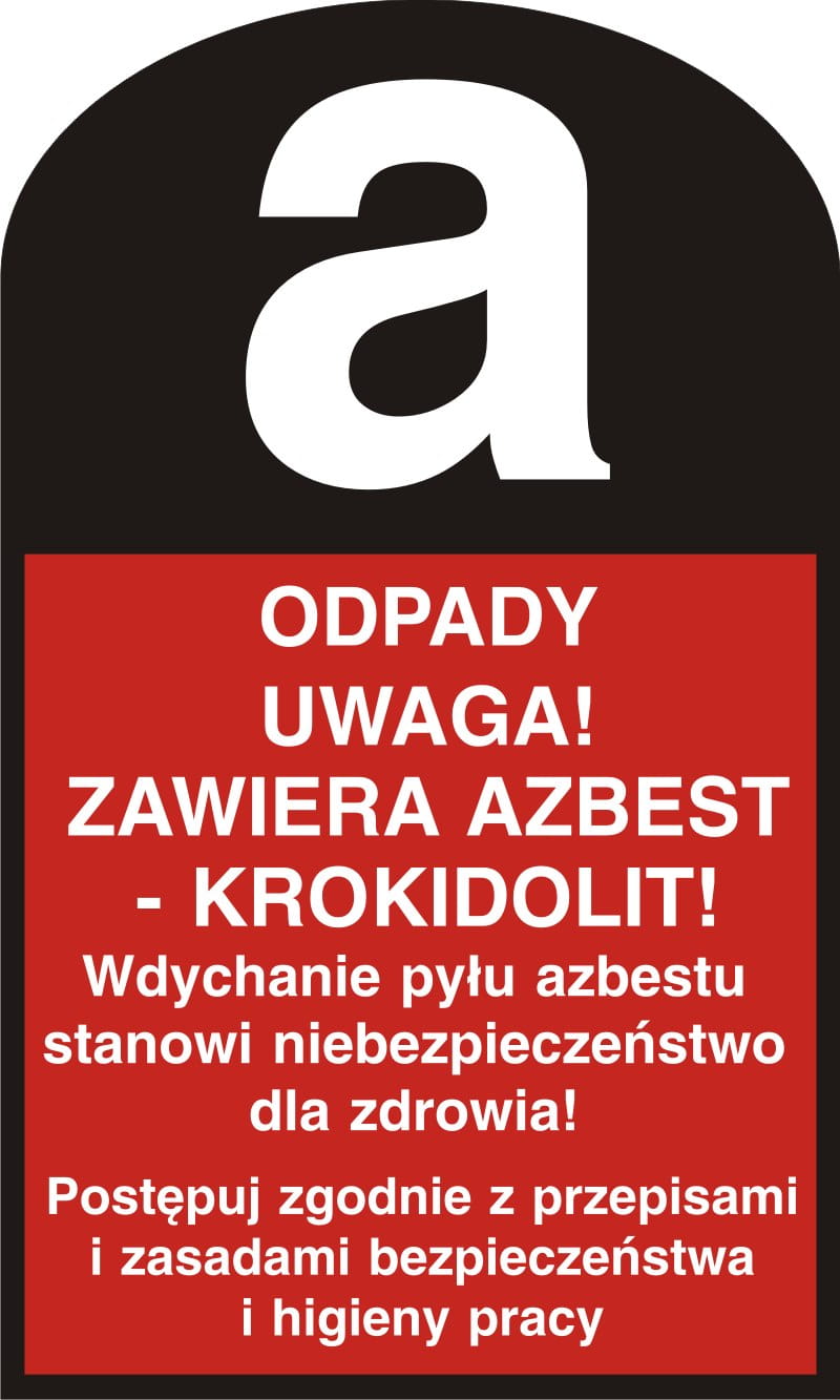 Znak bezpieczeństwa - Odpady. Uwaga! Zawiera azbest - krokidolit! w kategorii Substancje chemiczne