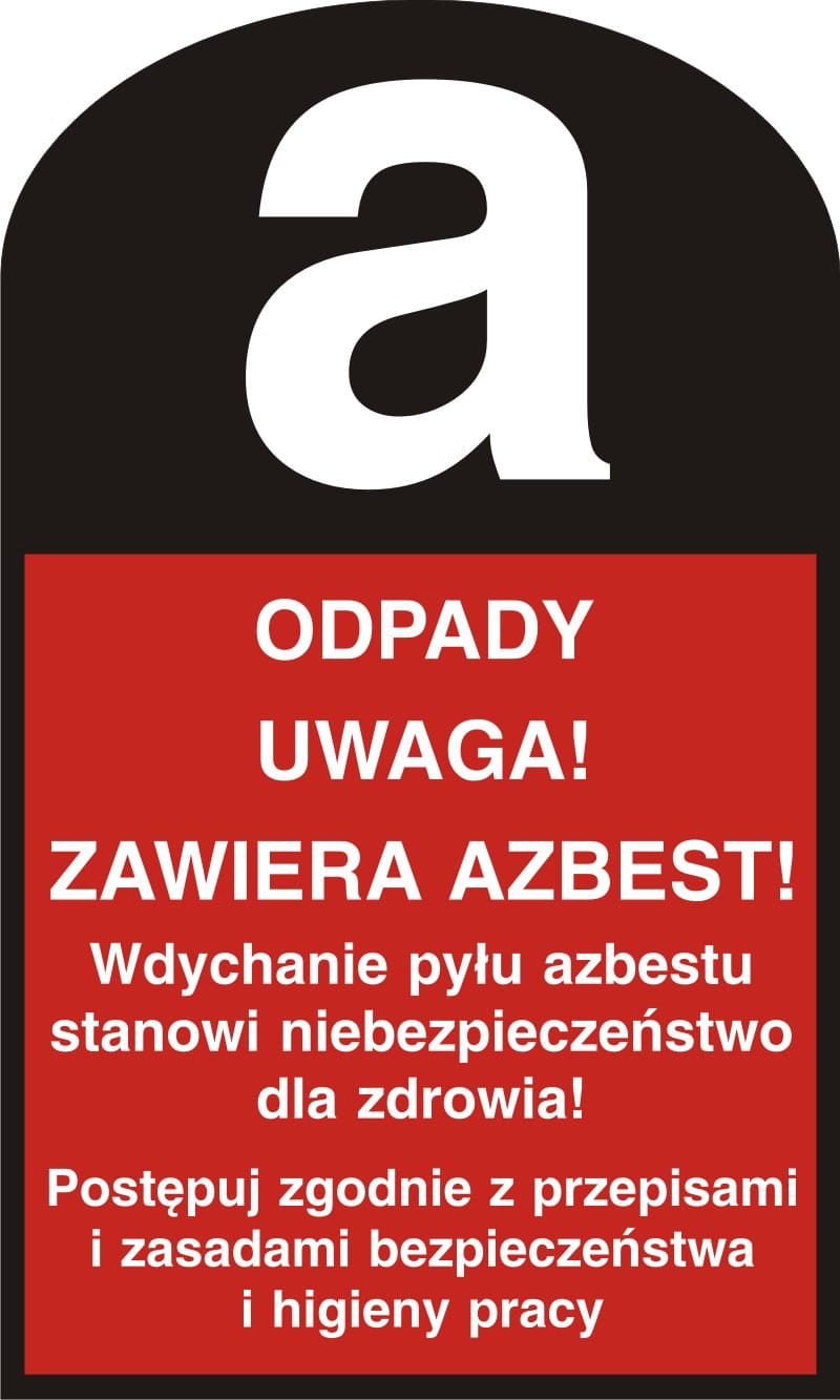 Znak bezpieczeństwa - Odpady. Uwaga! Zawiera azbest! w kategorii Substancje chemiczne