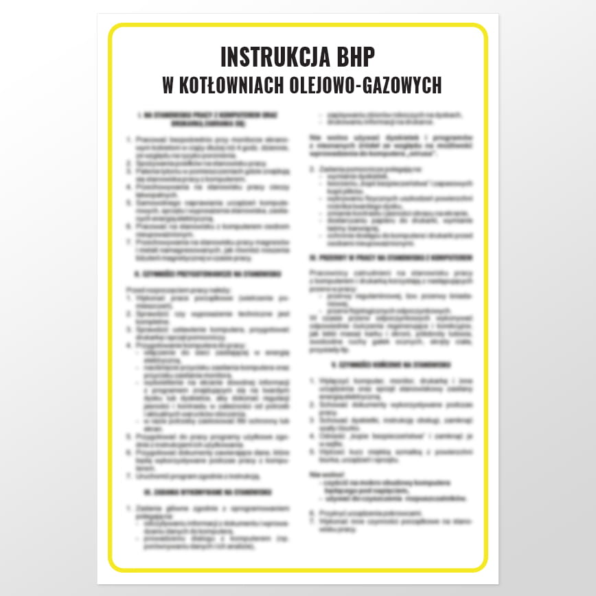 Tablice BHP dla kotłowni to podstawowy element ich wyposażenia, przy czym należy pamiętać, aby były adekwatne do używanego osprzętu. Instrukcja BHP w kotłowniach olejowo-gazowych jest dedykowana dla budynków ogrzewanych gazem lub olejem opałowym. Oferowana tablica informacyjna dla kotłowni ma format 24,5 cm x 35 cm i charakteryzuje się trwałym nadrukiem.