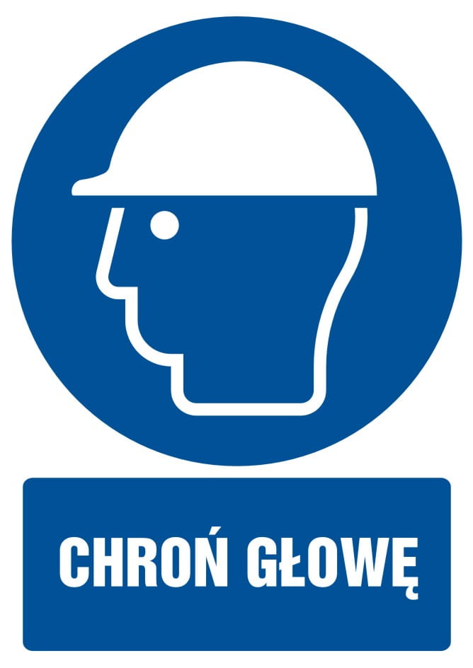 Znak z opisem Chroń głowę w kategorii znaki nakazu bhp