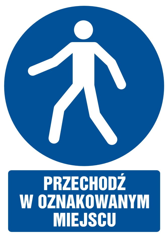 Znak z opisem Przechodź w oznakowanym miejscu w kategorii znaki nakazu bhp