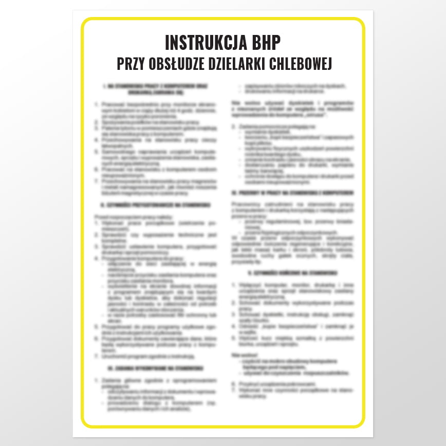 Dzielarka do chleba to komora, do której podawane jest ciasto, a następnie dzielone na porcje i podawane na taśmę transportową. Na stanowisku związanym z przygotowaniem ciasta musi znaleźć się instrukcja BHP przy obsłudze dzielarki chlebowej, która określa istniejące na stanowisku pracy zagrożenia. Stosowanie tablic BHP jest obligatoryjne dla przedsiębiorstw z branży gastronomicznej, a ich rozmieszczenie powinno być dopasowane do konkretnych stanowisk pracy i pomieszczeń socjalnych.