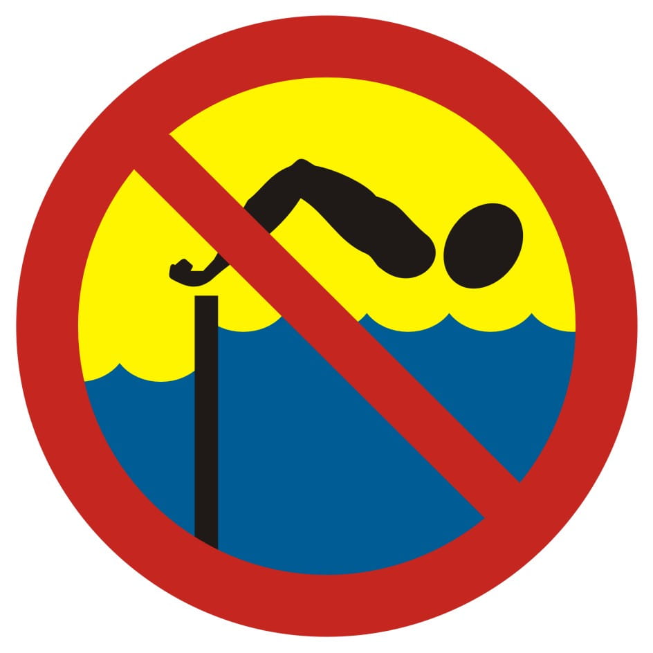 Kąpiel zabroniona - spiętrzenie wody - Znak, tabliczka